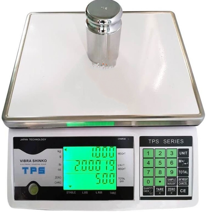 Cân Đếm TPSC là mẫu cân đếm có kích thước đĩa cân lớn hơn các loại cân đếm thông dụng khác, với thiết kế tính năng cho dòng cân đếm trong công nghiệp, vỏ cân làm bằng thép (Firm aluminum base) chống va đập cao, độ phân giải 1/60.000 giúp cân đếm chính xác những vật mẫu nhỏ nhất như mạc áo, nút áo, các linh kiện điện tử rất rất nhỏ, Màn hình LCD, đèn backlight 3 cửa sổ, dễ dàng đọc và quan sát kết quả cân, Nhiều chế độ ứng dụng (cân, đếm mẫu…) và các đơn vị đo, Bộ nhớ có thể nhớ 60 loại sản phẩm, có chức năng cân kiểm tra với đèn 3 màu rất dễ dàng khi chúng ta trang bị đèn 3 màu cân có thể tự nhận tín hiệu từ đèn 3 màu mà không cần cái đặt gì thêm.